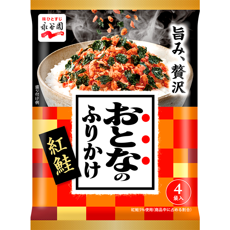 ・おいしい海苔と紅鮭の濃厚な味わいを合わせ、さらに紅鮭の風味を楽しめるような品質にリニューアルしました。(2025年9月)