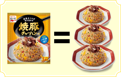 写真はすべてイメージです 簡単な説明文が入る予定?簡単な説明文が入る予定?簡単な説明文が入る予定?簡単な説明文が入る予定?簡単な説明文が入る予定? 焼豚チャーハンの素 香ばしく味付けした豚肉、ねぎなどの具が入った粉末タイプのチャーハンの素です。焼豚オイルで、焼豚の風味が際立つ味わいに仕上げました。 五目チャーハンの素 えび、鶏肉など五目の具が入った粉末タイプのチャーハンの素です。ねぎ香味油で、香ばしいねぎの風味が際立つ味わいに仕上げました。 かにチャーハンの素 かに風味かまぼこ、ねぎの具が入った粉末タイプのチャーハンの素です。かに香味油で、かにの風味が際立つ味わいに仕上げました。 えびチャーハンの素 えび、ねぎなどの具が入った粉末タイプのチャーハンの素です。えび香味油で、えびの風味が際立つ味わいに仕上げました。 にんにくチャーハンの素 チャーハン全体に風味がつくガーリックパウダーと、香ばしさを感じるローストガーリックを使用。メリハリのあるにんにくの味わいが楽しめます。 黒胡椒ガーリックチャーハンの素 大小2種類の黒胡椒、2種類のガーリックパウダー、ガーリックチップ、ガーリックオイルを組み合わせることで、スパイシーな大人の味に仕上げました。 黒チャーハンの素 ポークエキスで肉感のある味わいを出し、ロースト感のある醤油で強い火力で炒めたような香ばしい醤油味に仕上げました。 冷蔵庫の残り野菜を整理したい時、お子さまとのランチに、時短調理がしたい時に、チャーハンのアレンジレシピはピッタリ