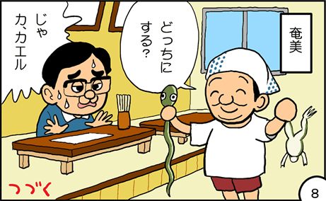 南国の郷土料理にもヒントを求めた。鹿児島では薩摩揚げと宝石のように光る魚「きびなご」の刺身を食べ、さらに南の島々も訪問。衝撃的だったのは奄美の「カエル料理」。グロテスクな見た目と異なり、鶏肉のような美味しさであった。