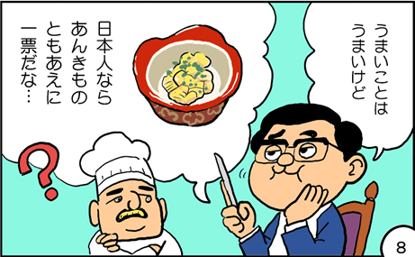 スイスでチーズフォンデュを楽しんだ後、食の本場フランスへ。濃厚なソースが特徴のフランス料理と素材の味わいを重視する日本料理との違いに思いを巡らせたり、フォアグラを食べながら頭の中で鮟鱇の肝と比べたり、様々なチーズを食べたりして開発のヒントを探したが、これは!という出会いには至らなかった。