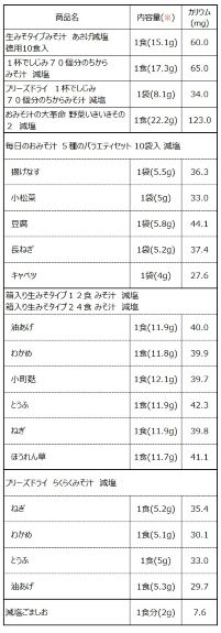 減塩商品のカリウム値は下記に記載しております。