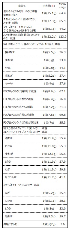 減塩商品のカリウム値は下記に記載しております。