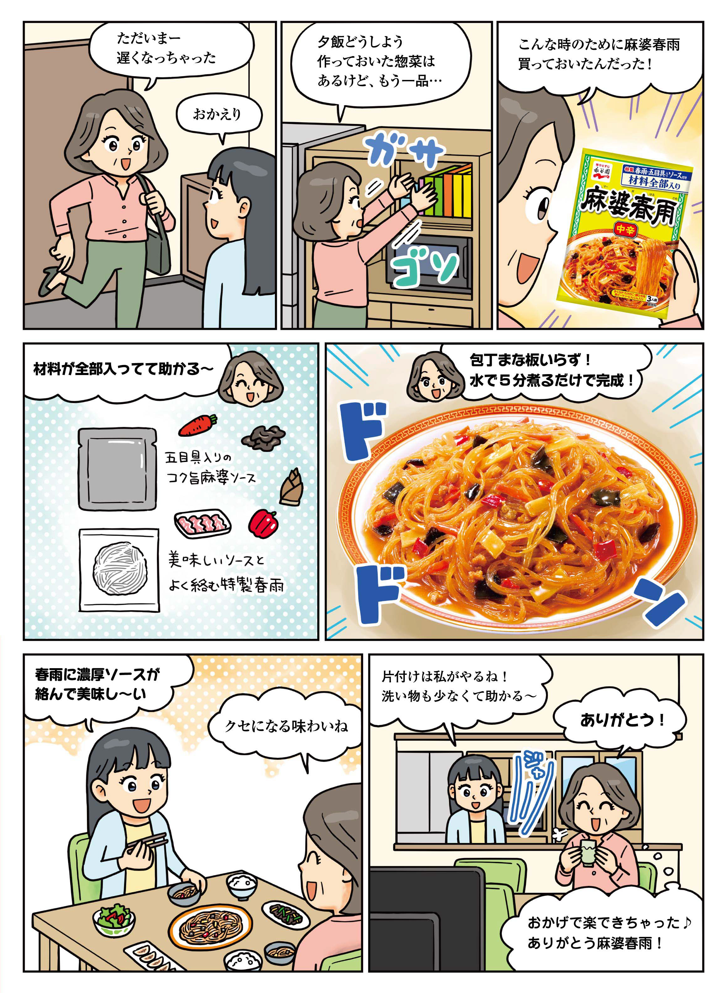 【マンガによる「麻婆春雨」商品紹介】
