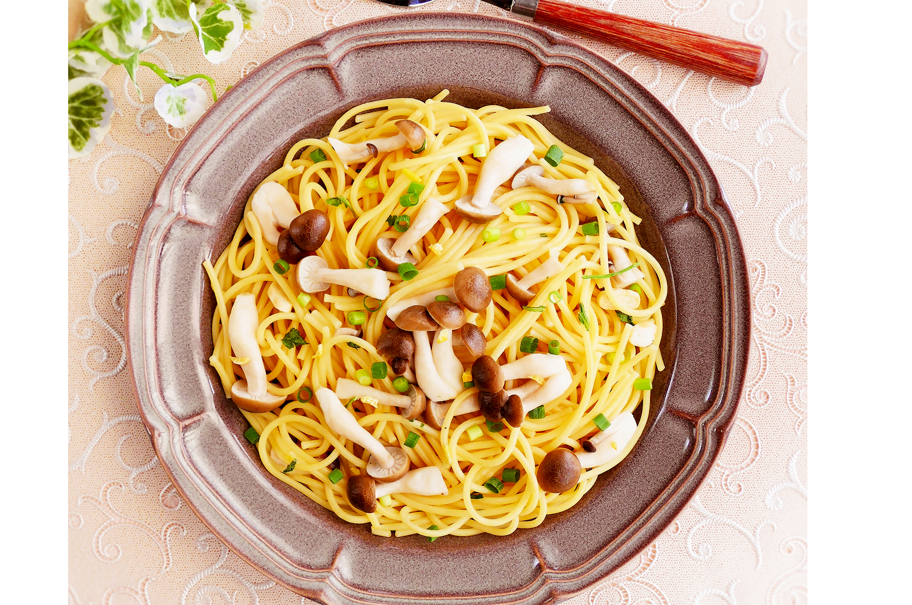 茹で上がる2分前にしめじを入れて一緒に茹でる。
